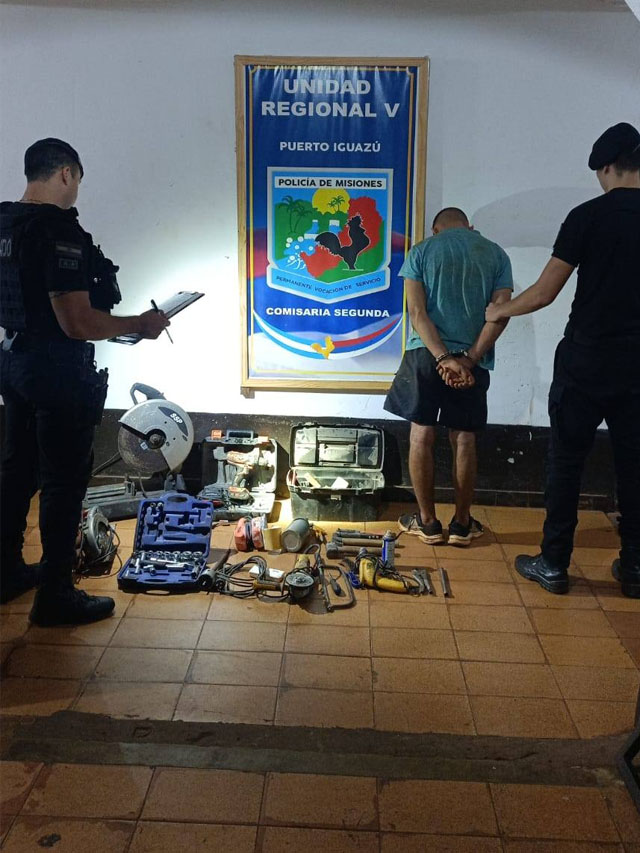 MISIONES.UNO – En Puerto Iguazú, efectivos de la División Comando Radioeléctrico URV recuperaron herramientas robadas de un taller y detuvieron a un joven de 26 años durante la madrugada de este lunes. El propietario se presentó horas más tarde en la comisaría para denunciar el hecho y se encontró con que los elementos ya habían sido restituidos.