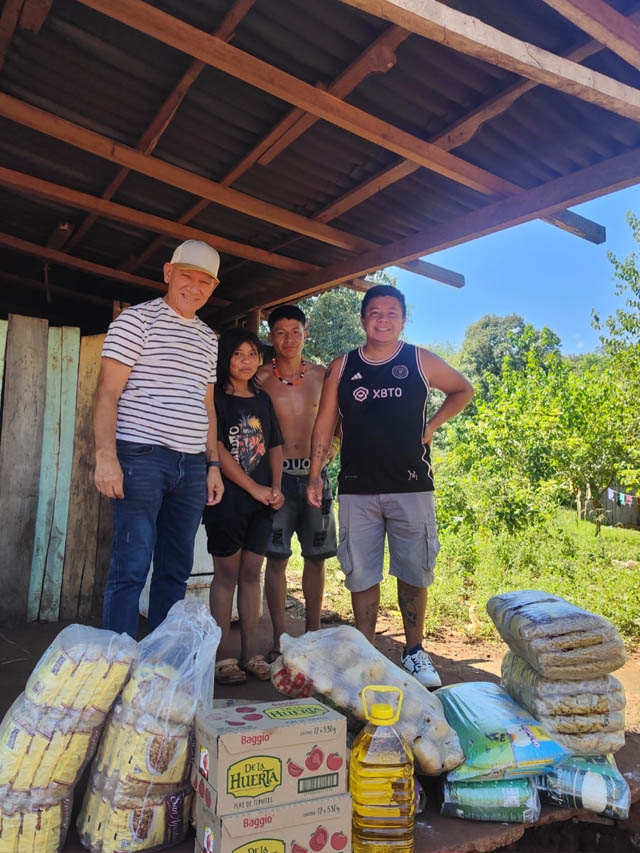 AGENCIA MISIONES.UNO | El intendente de Bonpland, Juan Carlos Bueno, visitó las aldeas Ivoty Okara y Mainomby para realizar la entrega de mercaderías destinadas a comedores comunitarios, en el marco de las acciones mensuales que impulsa el municipio.