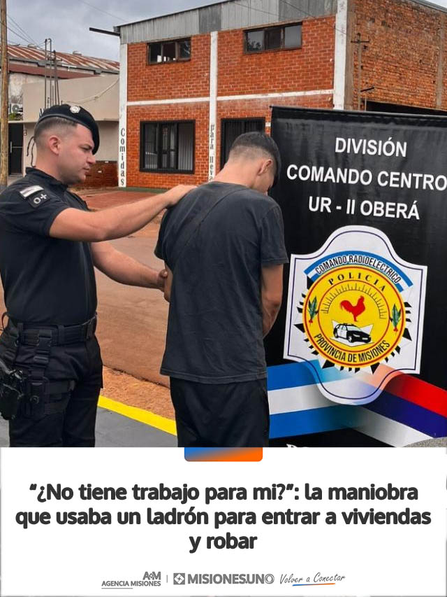 La Policía de Misiones detuvo a un hombre acusado de cometer un robo bajo la modalidad de engaño en la ciudad de Oberá, donde utilizaba la excusa de pedir trabajo para ingresar a propiedades y sustraer pertenencias.